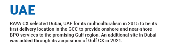 RAYA Customer Experience is an award-winning business process outsourcing (BPO) company, contact center outsourcing (CCO), and CX solutions provider of over 25 years. Our CX experts ensure customers are happy and loyal to global companies including Fortune 500 companies in Europe, the Middle East, and Africa in 15 different languages.